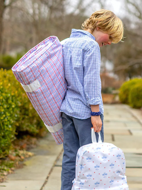 Introducing Our Rest Up! Nap Mat- the perfect solution for a comfortable and clean nap time! Made with our signature coated print outer that provides a wipeable and antimicrobial exterior. Our FLIP & FOLD design is easy to open and close for all ages. The full inside zip around cover ensures dirt, germs, and little creatures to stay on the outside and not on the plush fleece inside where your little ones lay. Each mat has a comfortable wide web shoulder strap for easy transport to and from school and for travel!